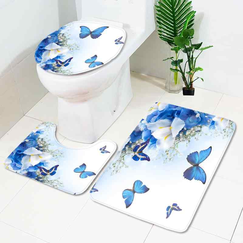バスルームセット 防水 防カビ シャワーカーテン トイレマット バスマット 蝶柄 エレガント 上品 ・・・