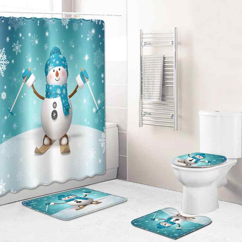 シャワーカーテン クリスマス柄 バスルームマット トイレマット 4点セット ラグマット ポリエステル・・・