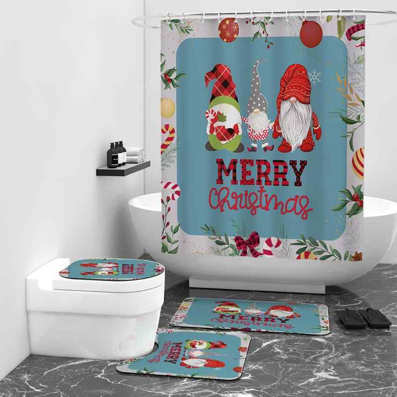 シャワーカーテン 丸洗いOK クリスマス柄 バスルーム 4点セット トイレマット トイレ蓋カバー バ・・・