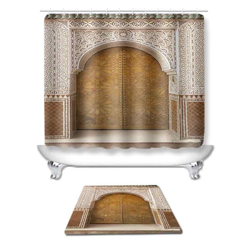 シャワーカーテン バスルーム 木目調 プリント柄 ポリエステル 撥水加工 バスマット トイレマット ・・・
