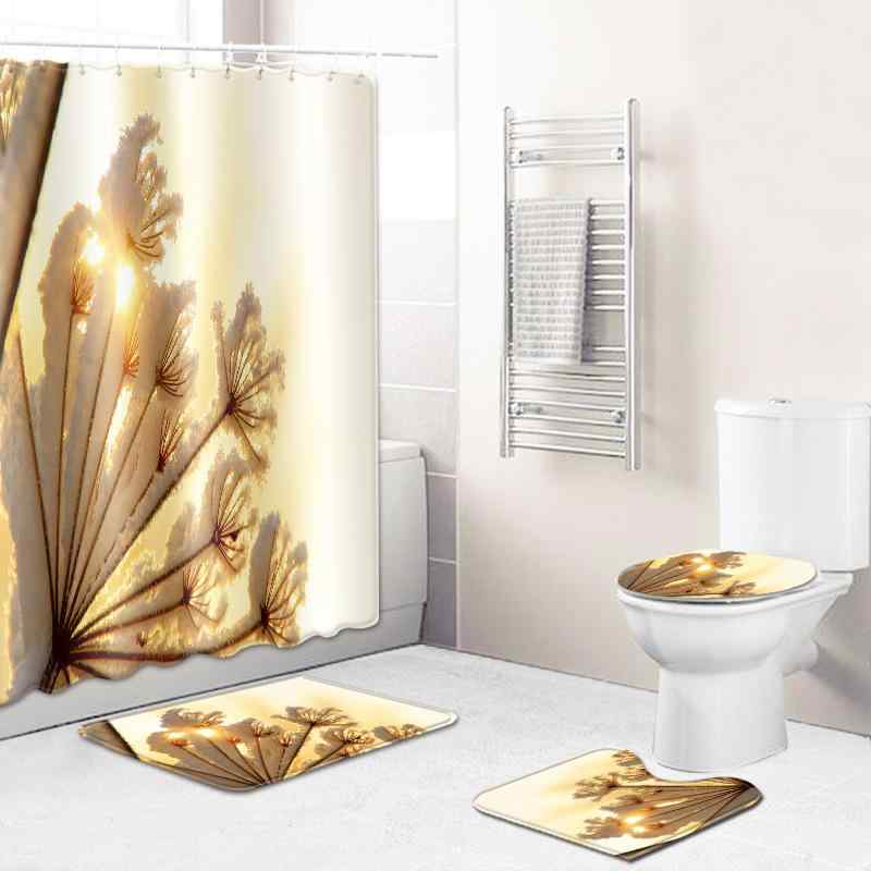 バスルーム用品セット 竹柄 花柄 シャワーカーテン トイレマット バスマット 3点セット 防水 ポリ・・・
