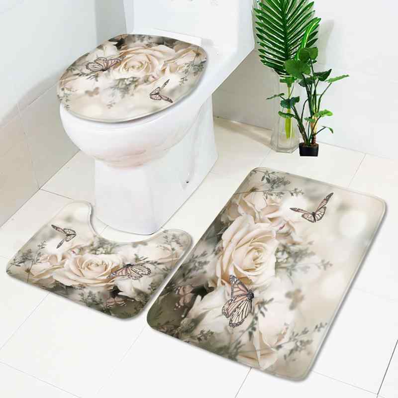 トイレマット 3点セット ふわふわ トイレフタカバー 柔らかい トイレカバー 普通型 U型 O型 おしゃれ 北欧 洗浄暖房 便座 吸着シート トイレタリー フタカバー