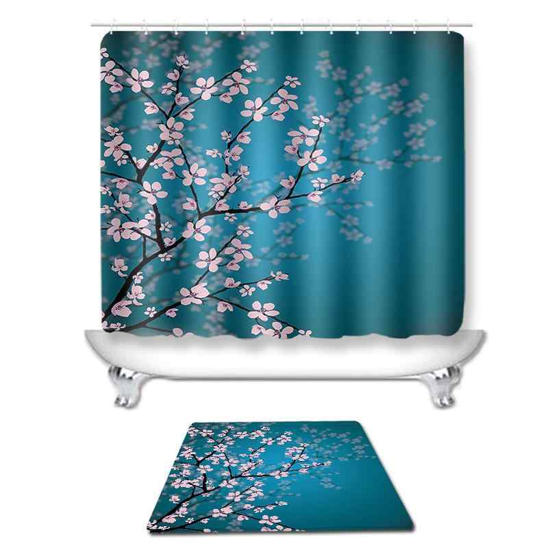 シャワーカーテン 浴室 お風呂 防水 3Dデジタルプリント 梅柄 ボタニカル柄 ポリエステル製 速乾・・・
