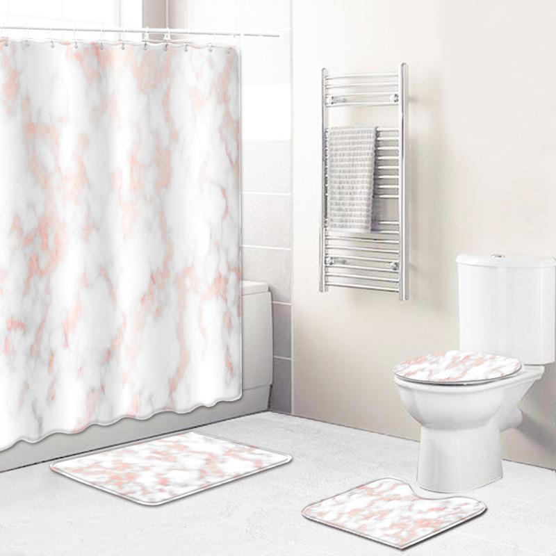 バスルームセット 大理石柄 シャワーカーテン バスマット トイレマット フタカバー 4点セット ポリ・・・