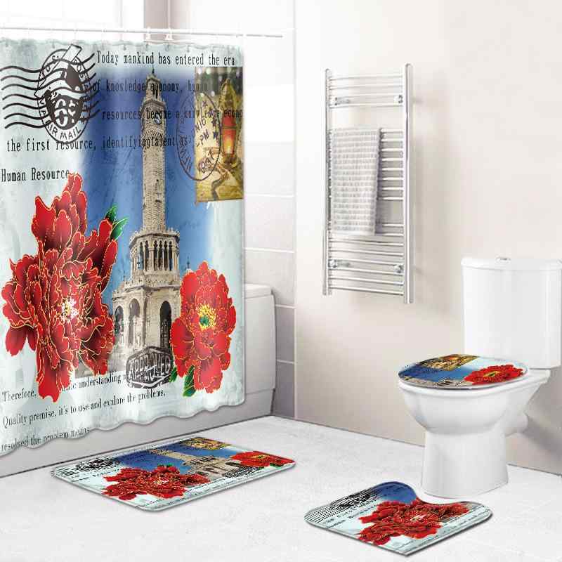 シャワーカーテン バスルーム 4点セット 欧米風 レトロ ポリエステル 防水 フランネル 吸水 バス・・・
