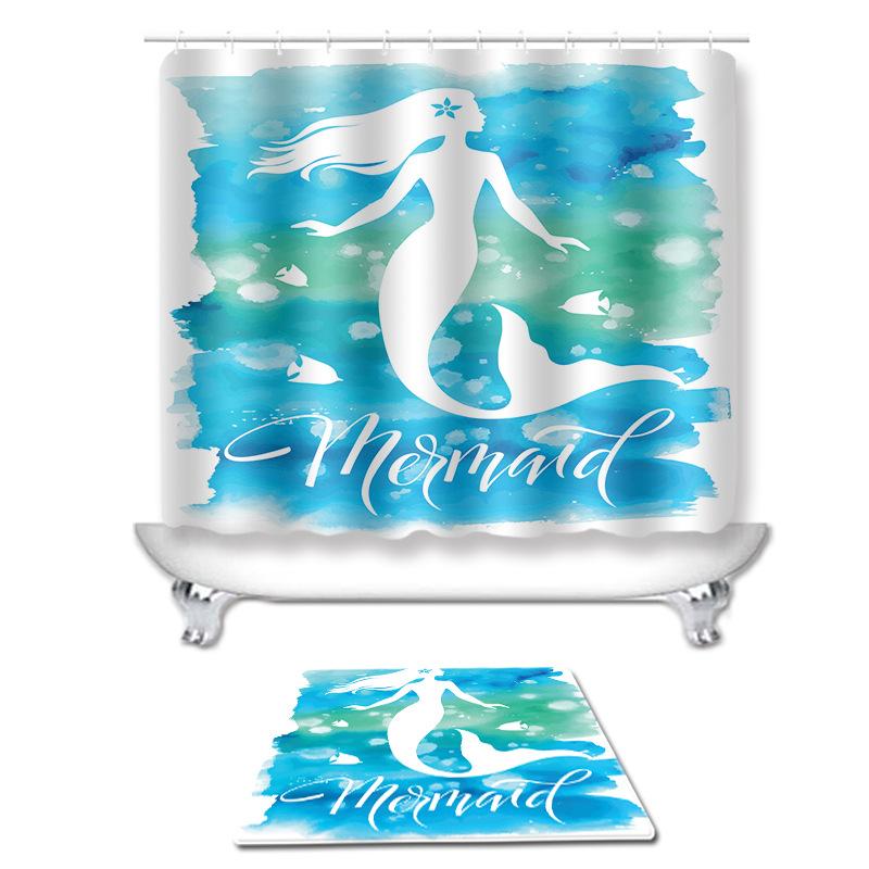 シャワーカーテン 人魚 マーメイド柄 白 ホワイト トイレマット 足元マット タペストリー 豪華セッ・・・