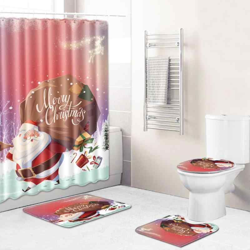 バスルームセット クリスマス 4点セット シャワーカーテン トイレマット バスマット 滑り止め 洗濯・・・