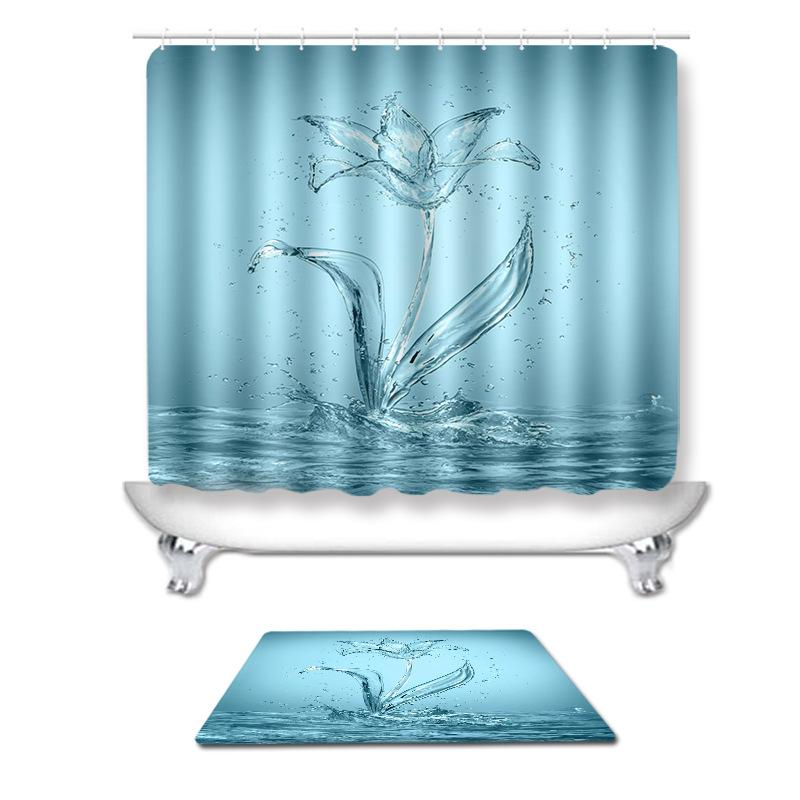 シャワーカーテン 吸水 速乾 滑り止め バスマット トイレマット 3点セット ポリエステル製 抽象花・・・