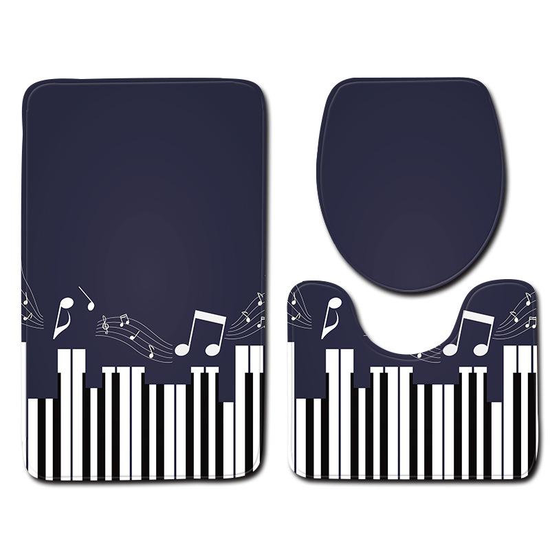 トイレマット ピアノ柄 エレガント 3点セット 洗濯機可 丸洗いOK 浴室ラグ 玄関ラグ ポリエステ・・・