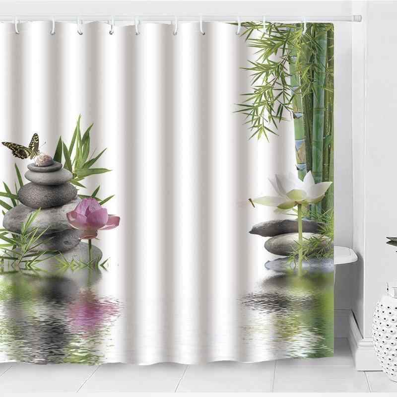 シャワーカーテン 撥水加工 高級感 竹柄 花柄 ポリエステル 浴室用 トイレマット 3点セット 足元・・・