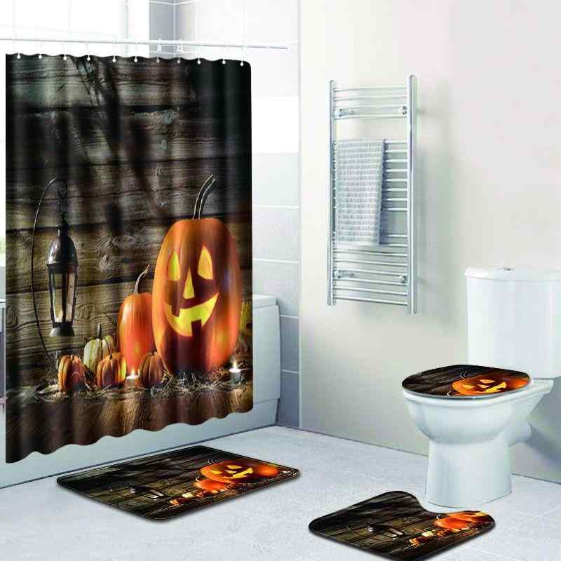 シャワーカーテン ハロウィン パンプキン 3D柄 4点セット バスルーム トイレマット バスマット ・・・