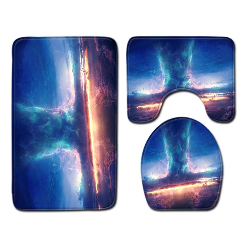 トイレマット バスマット 3点セット 星空柄 スターデザイン ポリエステル 丸洗い可能 滑り止め モ・・・