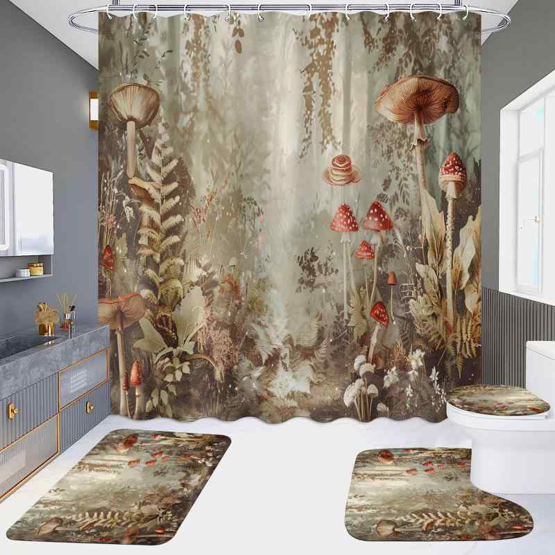 シャワーカーテン 防水 防カビ 穴開け不要 突っ張り棒対応 高画質プリント きのこ柄 おしゃれ 乾湿・・・