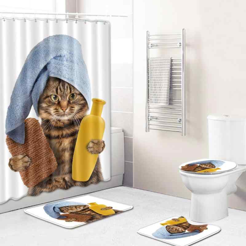 バスルームセット 4点セット シャワーカーテン バスマット トイレマット かわいい アニマル柄 キャ・・・