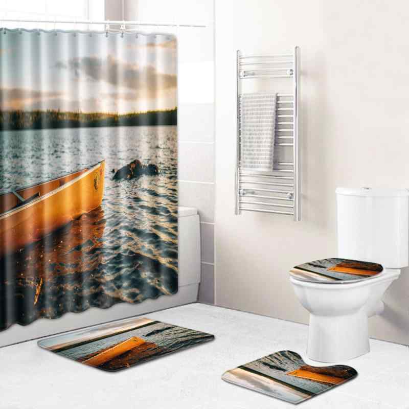 シャワーカーテン 柄物 バスマット トイレマット 4点セット 洗濯機で洗える ポリエステル製 撥水加・・・