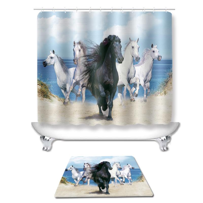 シャワーカーテン トイレマット タペストリー セット はっ水 防水 ポリエステル ピーチスキン 躍動・・・