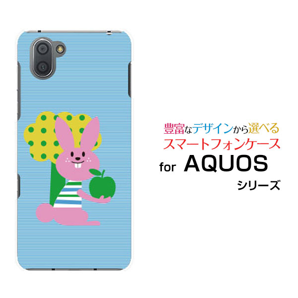 オリジナルデザインハードケース/TPUソフトカバー【AQUOS sense7 sense7 plus sense6 sense4 sense5G sense3 sense2】イラスト キャラクター ウサギ リンゴ ブルー 青 かわいい