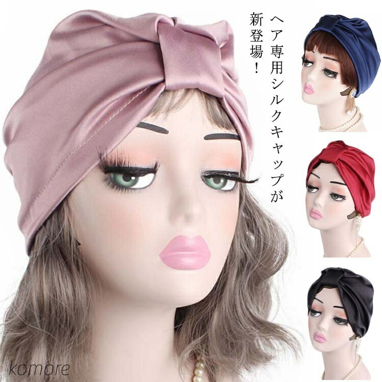 寝ている間の髪にやさしい 乾燥や摩擦から髪をまもる シルク100%ヘアケア ホームケアナイトキャップ シルクキャップ ヘッドキャップ リボン式 調整可能