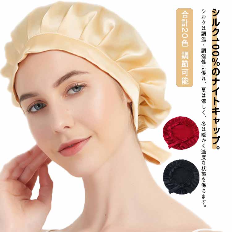 ナイトキャップ シルク100% ヘアキャップ シルク100% 帽子 寝癖 防止 室内帽子 シルク レディース 美髪 安眠 就寝 快眠 パサつき 予防 抜け毛 防止 ギフト プレゼント