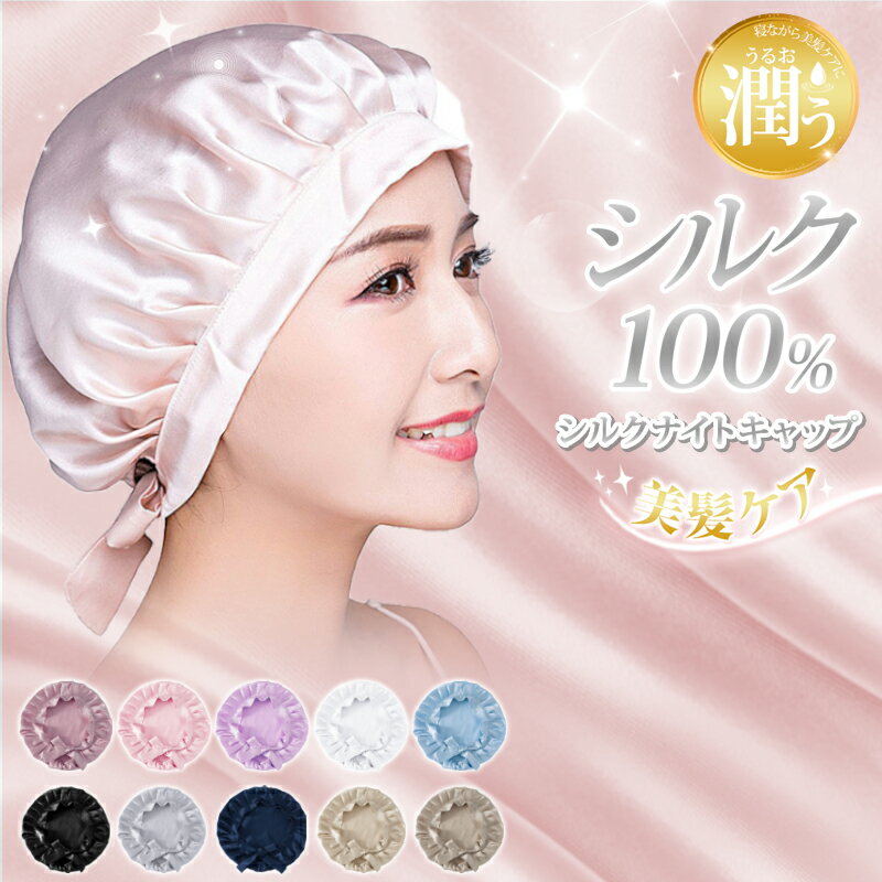 「シルク ナイトキャップ」 かわいい ヘアケア 髪に良い 乾燥 & 摩擦 を防ぎ