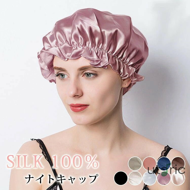 ナイトキャップ シルク100% ゴム紐 Mサイズ Lサイズ 無地 つや髪 摩擦 寝ぐせ防止 シルクキャップ 抗菌 就寝用 帽子 フリル かわいい 絹