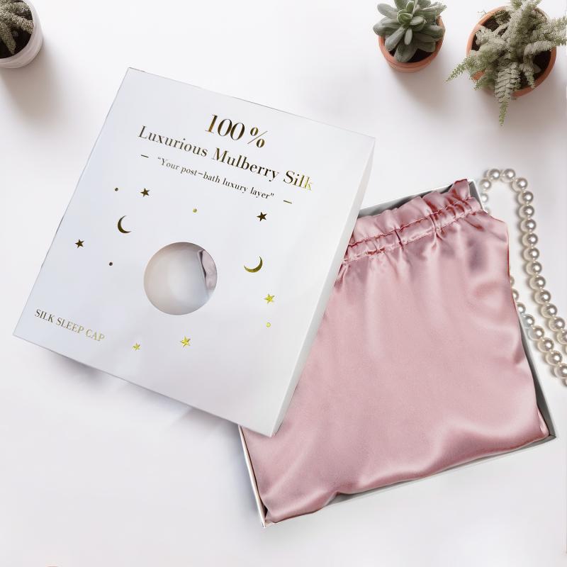 シルクのナイトキャップで髪を包み込んで優しく守る。睡眠中の髪の乱れ、摩擦、乾燥対策に。