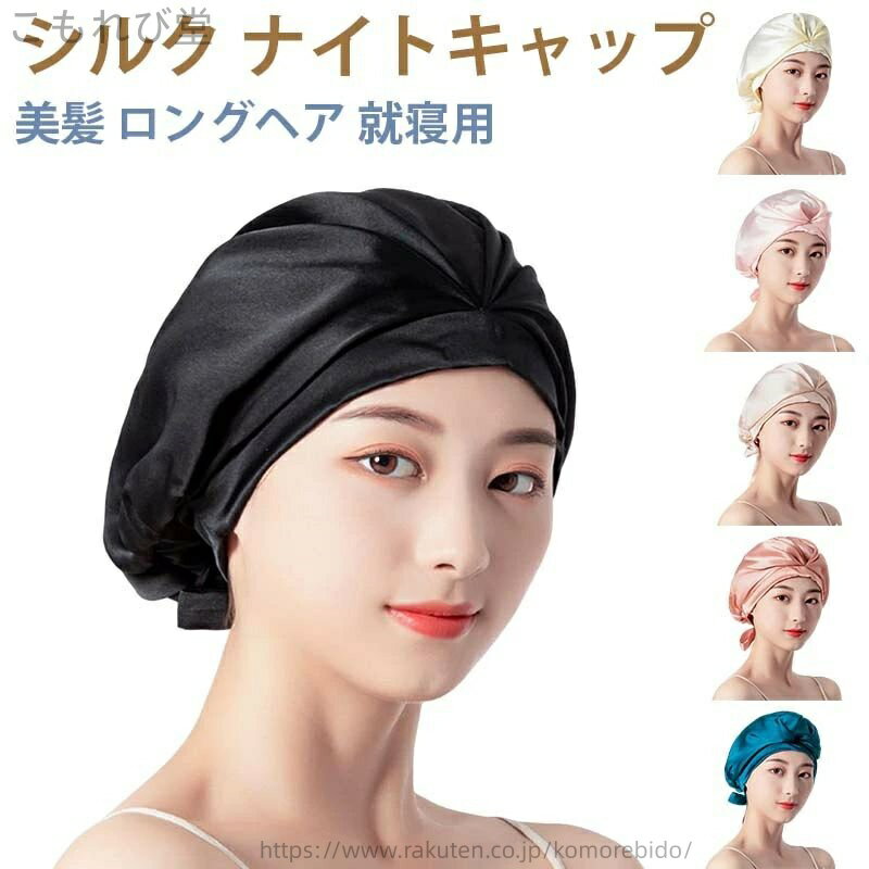 ナイトキャップ 天然 シルク 100% ロングヘア ショートヘア 絹 ヘアケア 美容効果 髪がツヤツ・・・