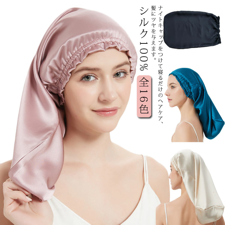 寝ている間に艶髪!ケアシルク ナイトキャップ ロングヘア 髪 シルク100% 乾燥摩擦防ぎ サラサラ 美髪