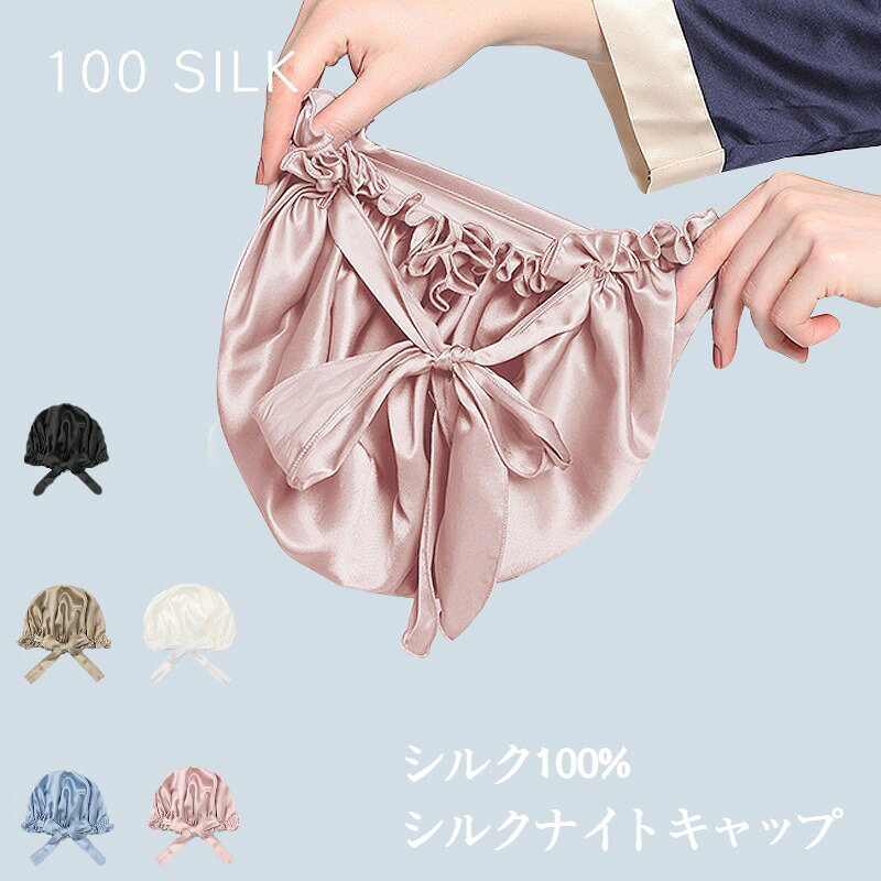 ナイトキャップ シルク 100% 6A 就寝用 美髪 摩擦軽減 頭皮保湿 リボン おしゃれ シルクキ・・・