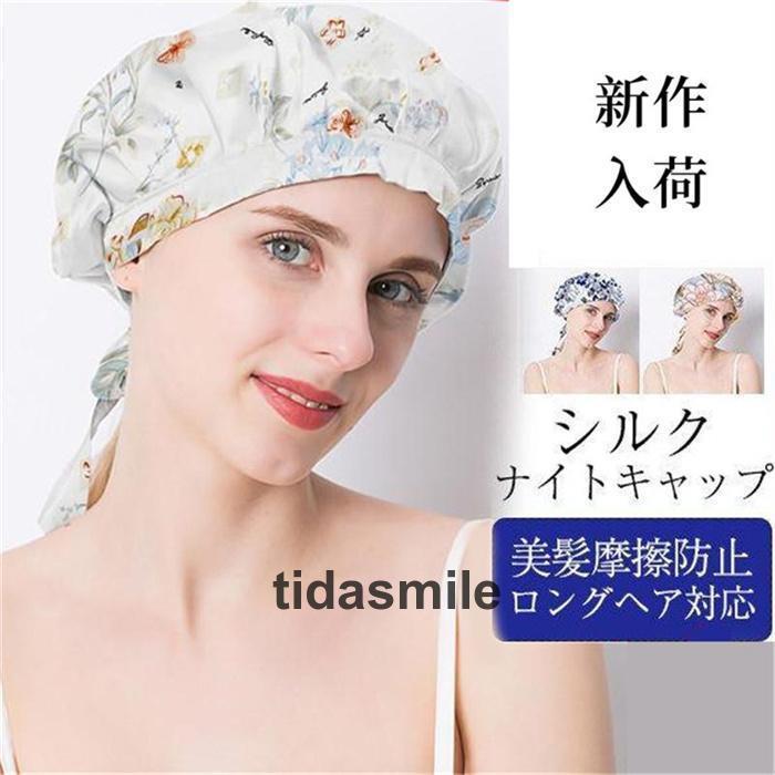 ナイトキャップ シルク100% 花柄 ロングヘア 艶髪 シルクキャップ 天然 ヘアキャップ シルク製・・・