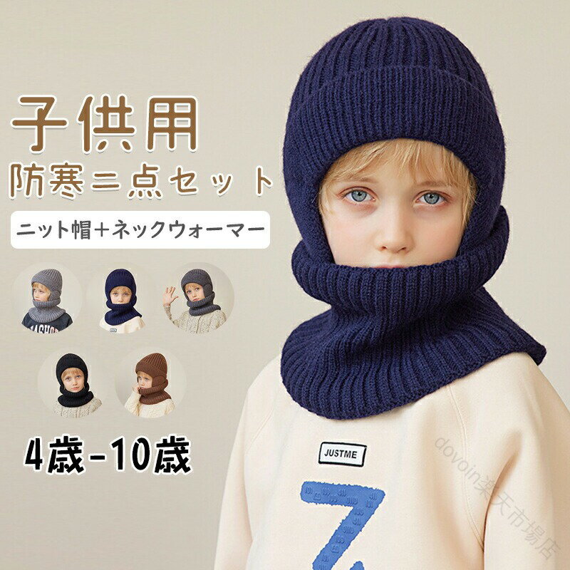 【2点セット】ニット帽 子ども 帽子 ネックウォーマー 子供 男の子 女の子 4-10歳 キッズ 耳・・・