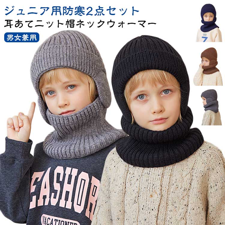 子供用ニット帽とネックウォーマーセット 耳当て付きで防寒効果高く冬の寒さ対策に最適 キッズ ジュニア向け暖かく快適な秋冬アイテム
