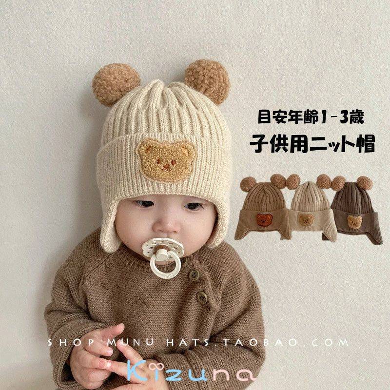 ニット帽 キッズ ベビー 帽子 子供用 帽子 耳あて 熊 クマ 防寒帽子 秋冬 ベビー 防寒 ボア ・・・
