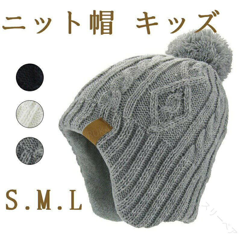 ニット帽 キッズ 耳当て ニット 帽子 耳あて 子供帽子 女の子 子供 防寒 ジュニア 帽子 冬 こども ニット帽子 ボンボン付き かわいい ニット帽子 子ども 春 秋 冬