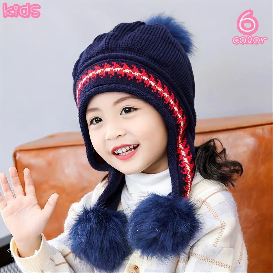 冬用ハット ニット帽 子供 ボンボン 厚手 耳当て 裏起毛 あったか 防風 防寒帽子 キッズ 女の子 男の子 通学 外遊び お出かけ ジュニア 小学生 旅行 通学