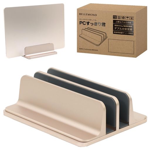 ベルモンドノートパソコンスタンド縦置きアルミ合金素材【PCすっきり君】PCスタンド2台収納幅調整可能・・・