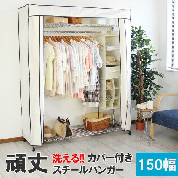 カバー付きハンガーラック 幅150 耐荷重50kg 頑丈 キャスター付き クローゼットハンガー パイプハンガー 洗えるカバー 衣類収納 コート掛け シンプル 洋服ハンガー