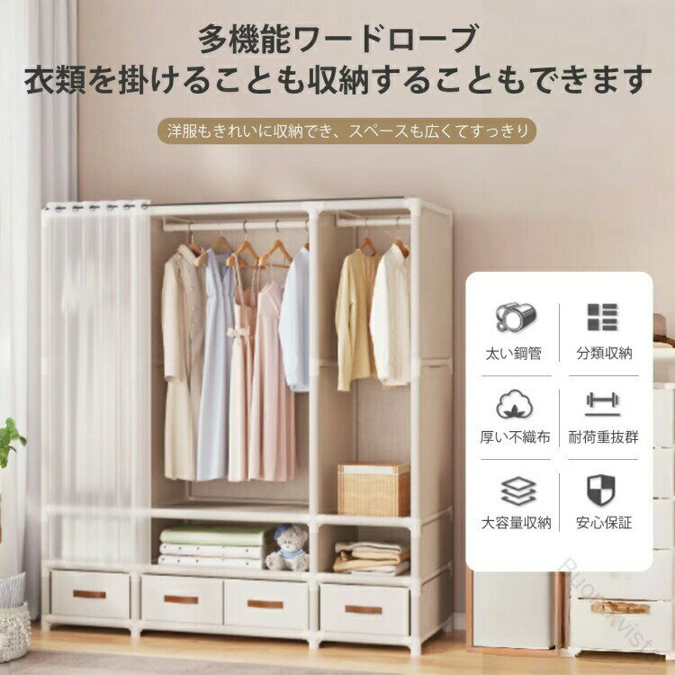 シンプル設計で組み立て簡単 省スペース対応 衣類や小物の整理に最適 防塵防汚効果で長く使えるクローゼット