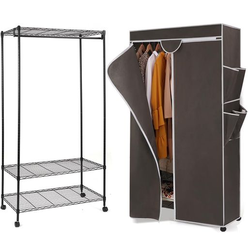 ワードローブ組み立て不要カバー付き大容量オックスフォード布クローゼットハンガーラック衣類収納ラック省・・・