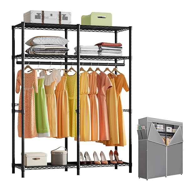 大容量で省スペース設計の多層ワードローブ 衣類収納に最適 防塵防汚機能付き おしゃれで頑丈な組み立て式カバー付きタイプ