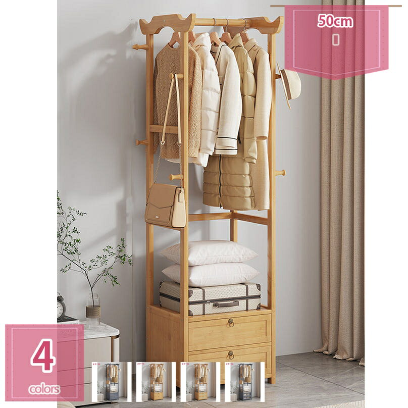 ハンガーラックスリム頑丈シングルコートハンガー木製収納付き洋服ラック引き出しラック付きキャスター付き・・・
