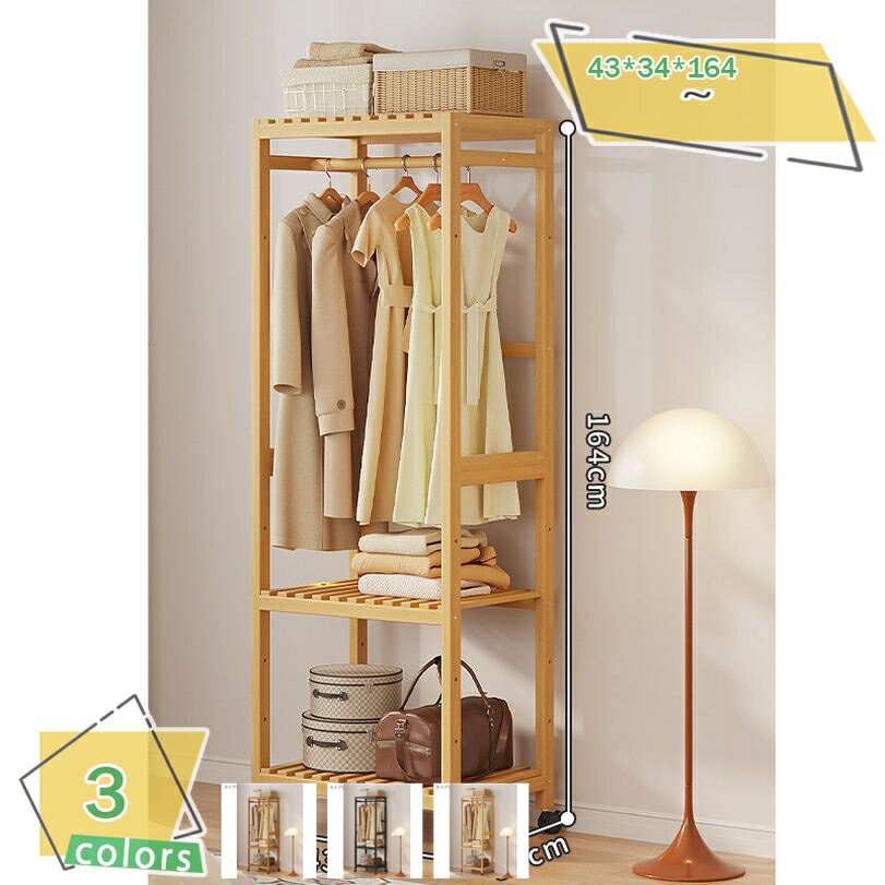 ハンガーラック キャスター付き スリム 竹製 3段棚板付き 大容量 洋服ラック 見せる収納 コート掛け 洋服掛け 省スペース 幅43×奥行34×高さ164cm天然竹製 ワードローブ コート掛け