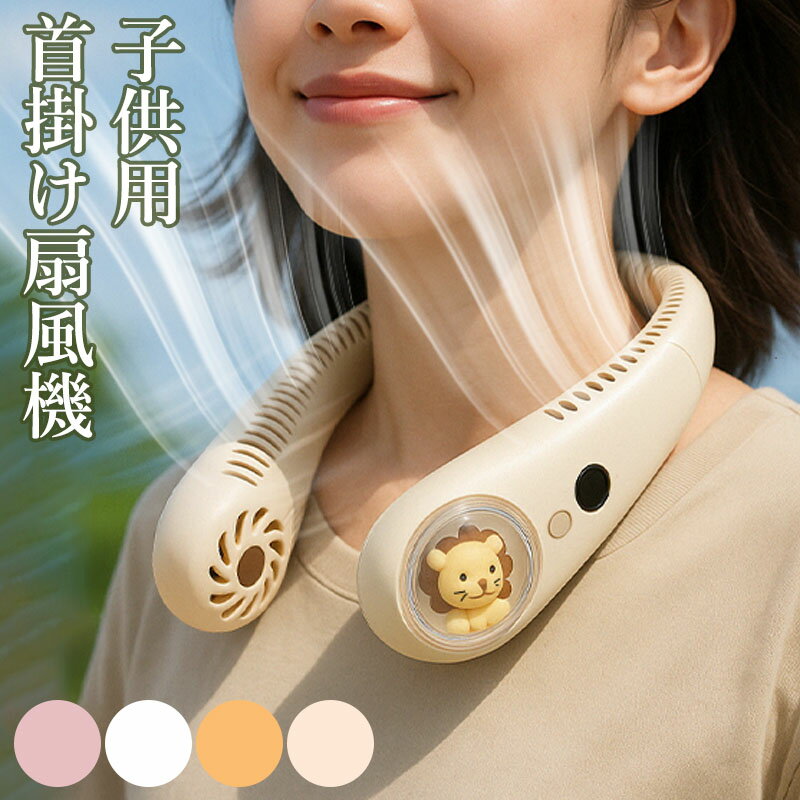 髪が巻き込まれにくい羽なし設計!3段階風量&静音モーターで、子どもでも安全快適に使える首掛け扇風機。軽量&USB充電式で熱中症対策にぴったりなかわいいキッズ用ネックファン。