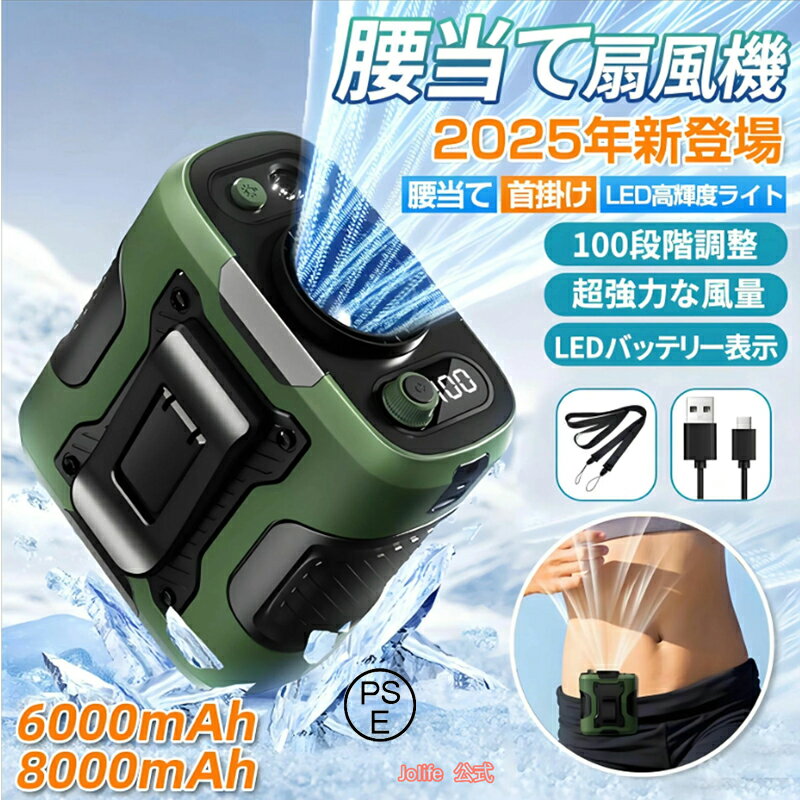 8000mAh/6000mAhの大容量バッテリー 冷風機 腰掛け 携帯 腰や首に掛け 静音運転 ポータブルファン 首かけ ファン ベル 卓上 ベルト扇風機 アウトドア ベルト扇風機 屋外作業