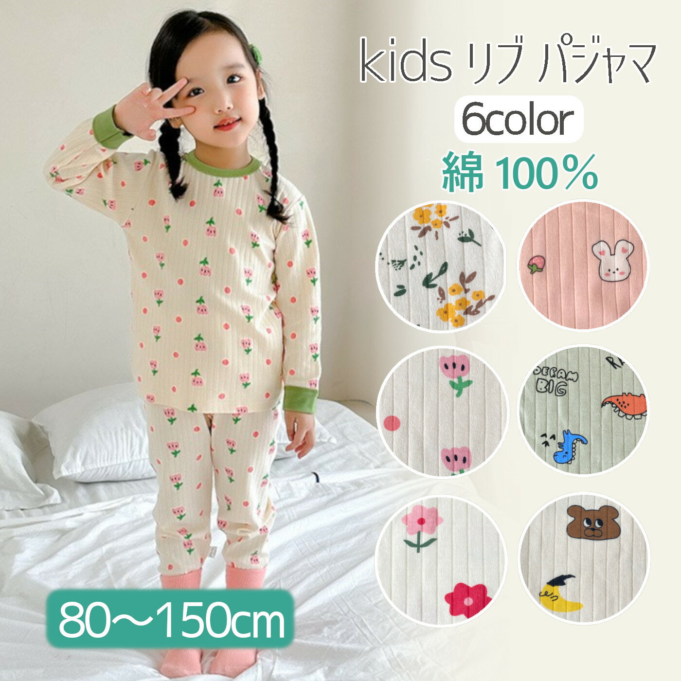 送料無料 リブ素材で伸縮性抜群。かわいいパジャマ