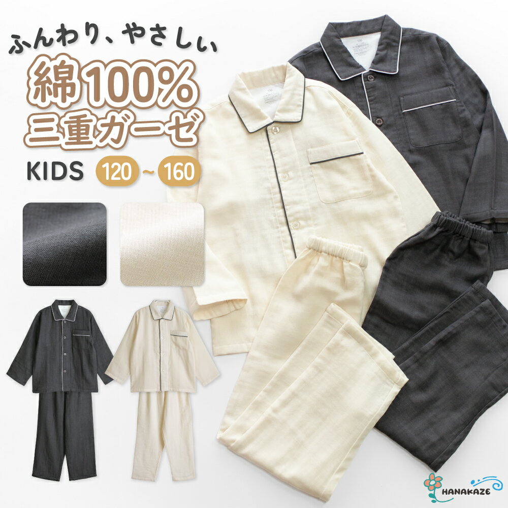 パジャマ キッズ 男の子 女の子 綿100% 三重ガーゼ トリプルガーゼ 長袖 秋 冬 ふんわり暖か・・・