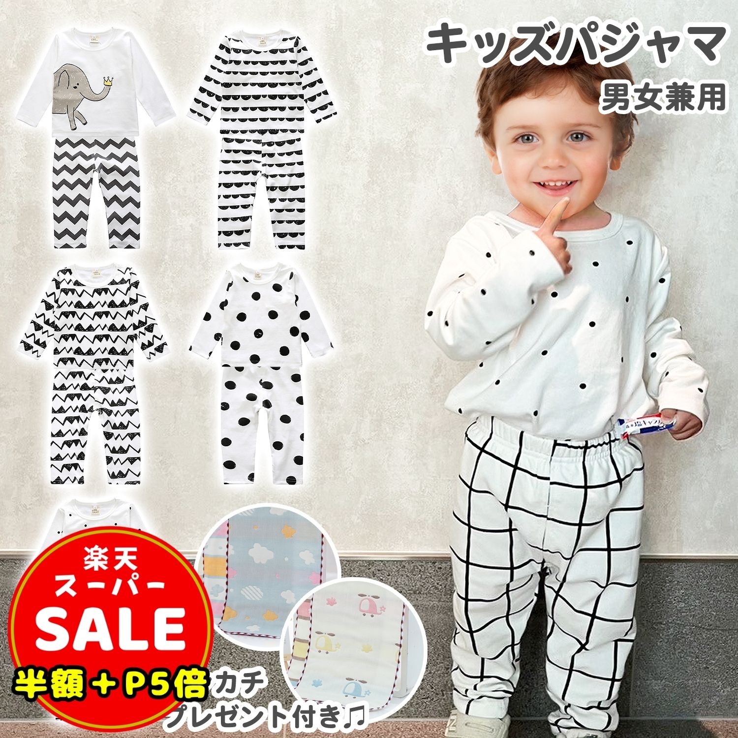 ガーゼハンカチプレゼント!上下セット ベビー パジャマ ゆったりなデザインでお着替え楽々◎