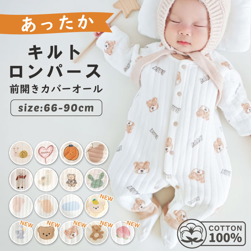 春 秋 綿100% ロンパース 綿100% ベビー 服 新生児 パジャマ カバーオール 綿 男女兼用 保育園 幼稚園 暖かいキルト キッズ