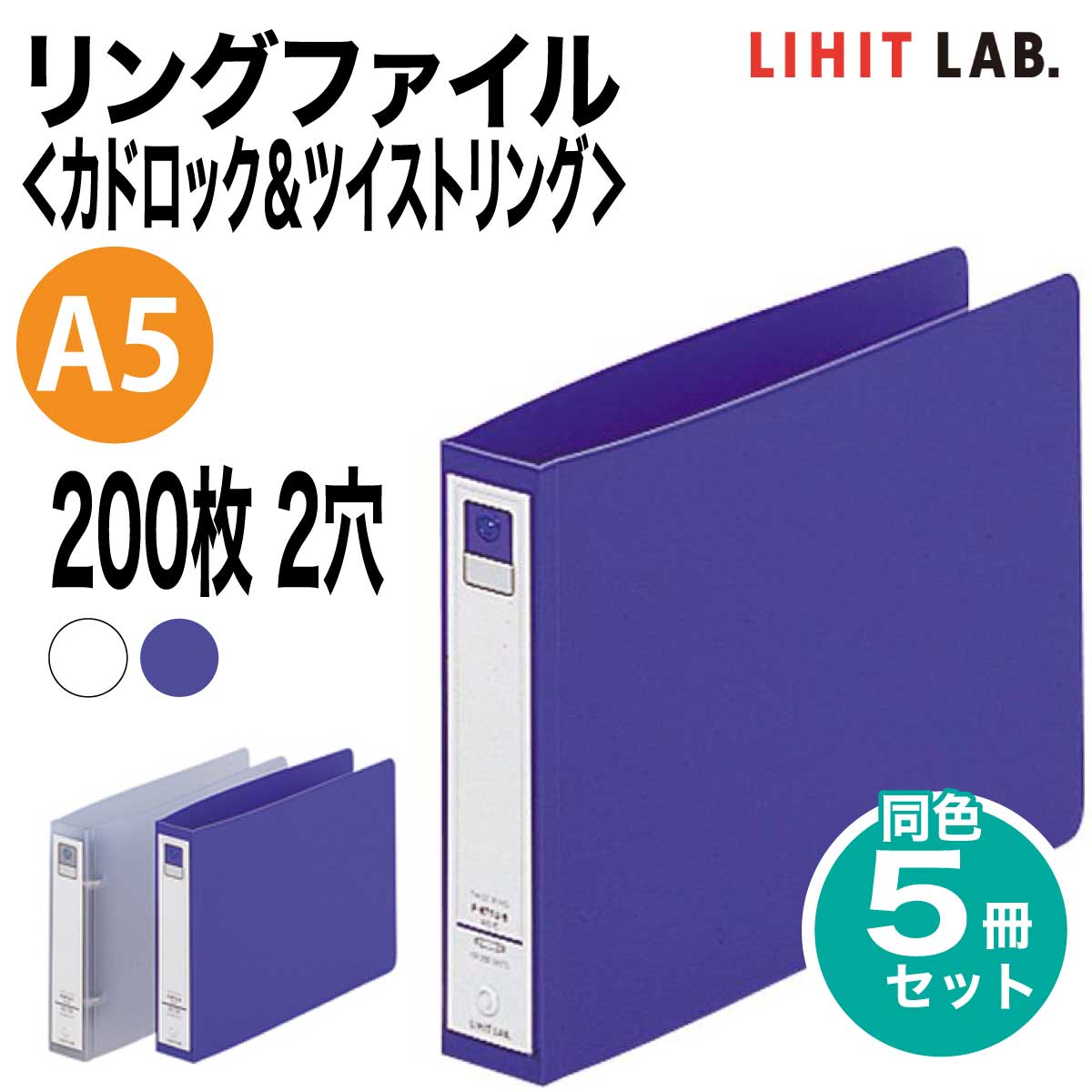 [リヒトラブ] 5冊セット リングファイル カドロック&ツイストリング A5 200枚 2穴 E型 ・・・