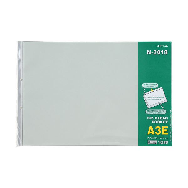 (まとめ) リヒトラブ PPクリヤーポケット(クリアポケット) A3ヨコ 2穴 台紙あり N-201・・・